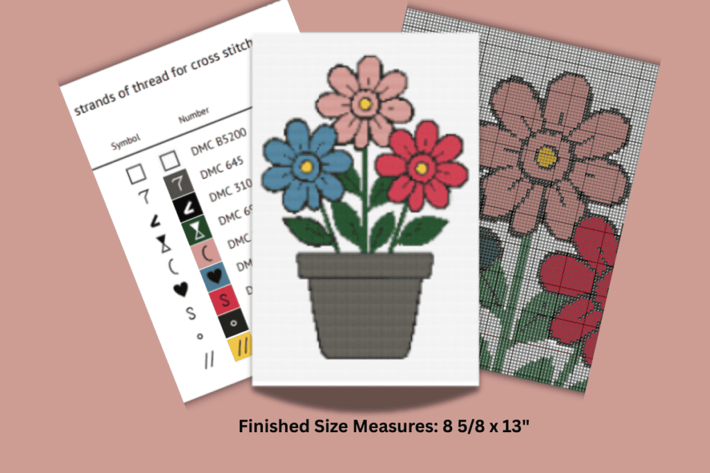 You will love how simple this Easy cross stitch flowers pattern is. Finished Size Measures: 8 5/8 x 13″ It would be so cute to place on a bookshelf or give it as a gift to someone.