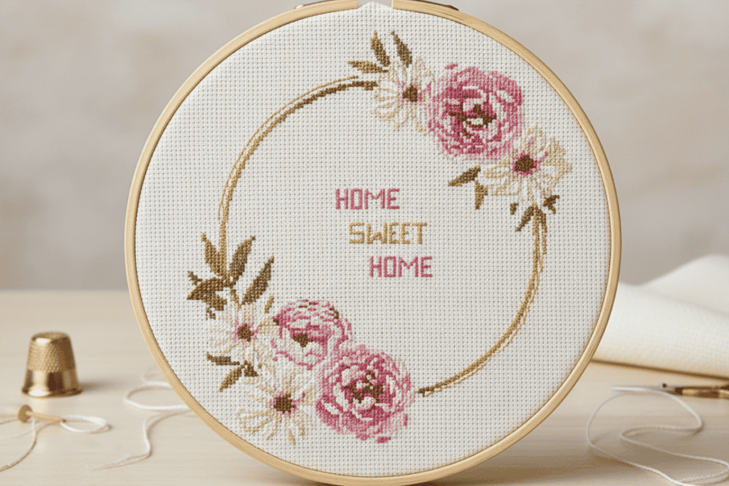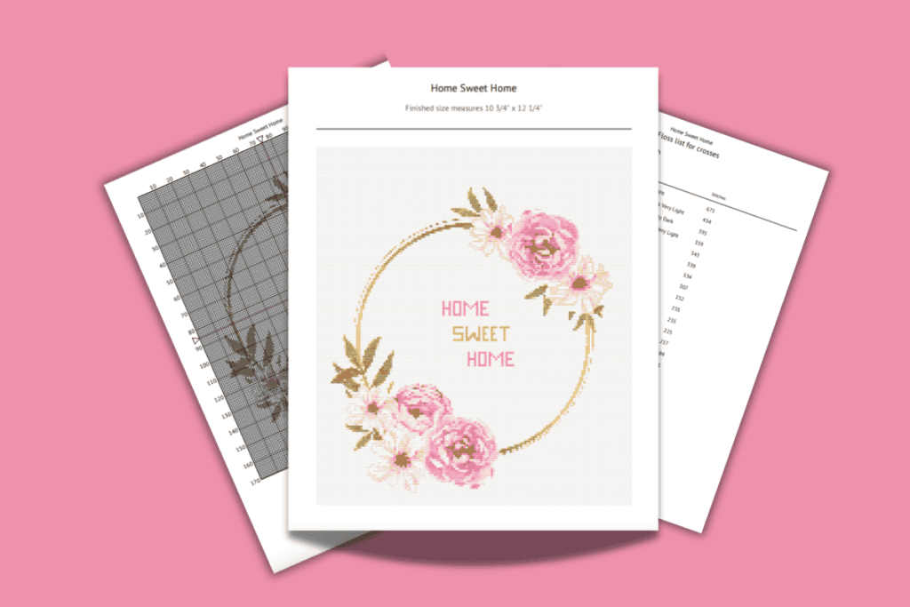 We have made this cross stitch pattern so simple. This home sweet home cross stitch pattern uses less than 20 flosses so it’s perfect for a beginner. It’s such a cute way to decorate for your home or to give as a gift.