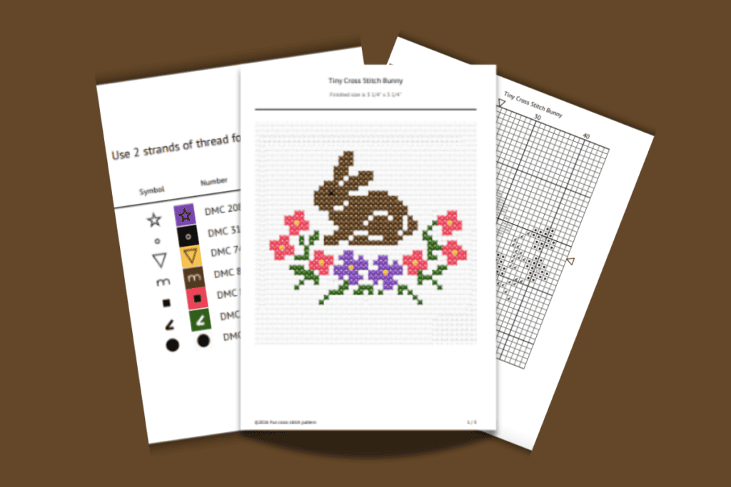 We have made this cross stitch pattern so simple. This Tiny Cross stitch bunny pattern uses less than 10 flosses so it’s perfect for a beginner. It’s such a cute way to decorate for your home or to give as a gift.
